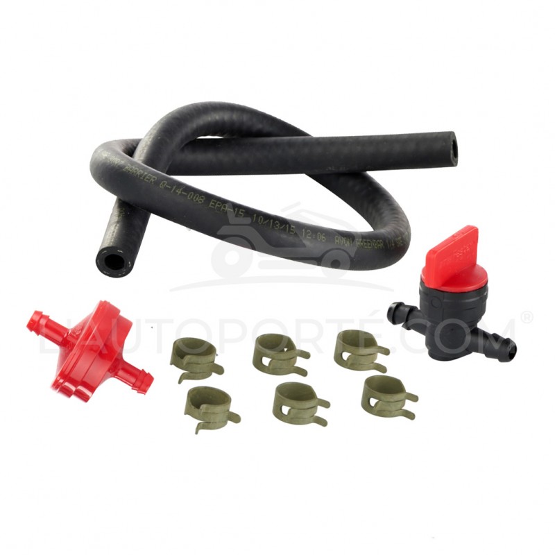 Une exclusivité réalisée par L'autoporté.com Pack essence origineVanguard pour la majorité des modèles de tracteurs tondeuses autoportées comprenant : - 1 filtre à essence 845125 - 1 robinet à essence 698183 - 1 durite d'essence 150507 - 6 colliers Ø 12 mm 791850