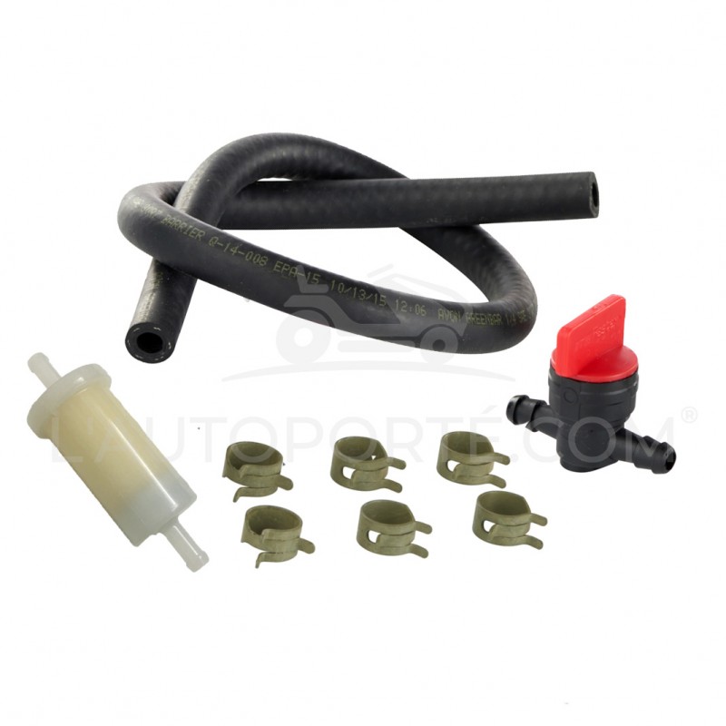 Une exclusivité réalisée par L'autoporté.com Pack essence origine Briggs & Stratton pour la majorité des modèles de tracteurs tondeuses autoportées comprenant : - 1 filtre à essence 691035 - 1 robinet à essence 698183 - 1 durite d'essence 150507 - 6 colliers Ø 12 mm 791850